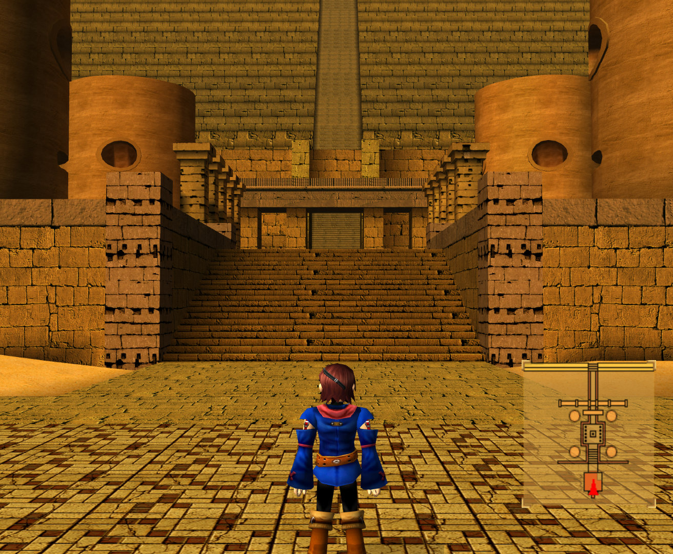 西の壁に隠し扉が開くので入りましょう。ピュラミス神殿の入り口に出ます。